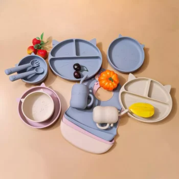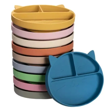 Silicone Suction Baby Plate in Cute Cat Shape for Self-Feeding Toddlers
