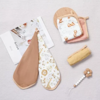Digital Print Bamboo Cotton Muslin Face Towel – Cute Feeding Bibs