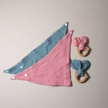 Muslin Cotton Baby Bib and Wooden Bird Teether Gift Set – Eco-Friendly Feeding Accessories