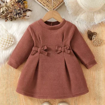 Baby Girl Dress Caramel Fleece with Double Bow Design