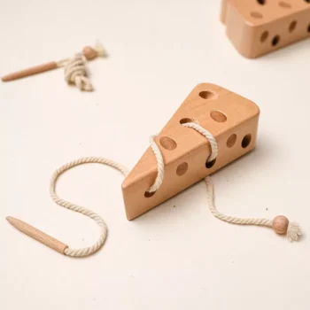 Wooden Lacing Cheese Toy – Montessori Activity Toy for Toddlers and Kids