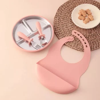 Kids Stainless Steel Weaning Tableware Set with BPA-Free Silicone Suction