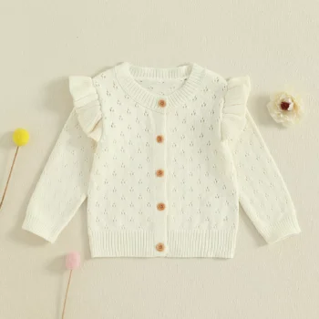 Toddler Girl Knitted Ruffle Cardigan Long Sleeve Crew Neck Button Sweater