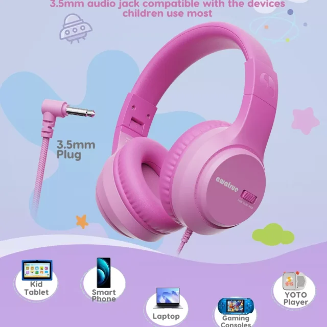 Give your child the perfect balance of fun and safety with these wired over-ear kids headphones. Designed with young ears in mind, they feature adjustable volume-limiting settings (74/85/94dB) to protect hearing without sacrificing clear, immersive sound. Whether for school, travel, or home use, these headphones make learning and entertainment safe, comfortable, and enjoyable.