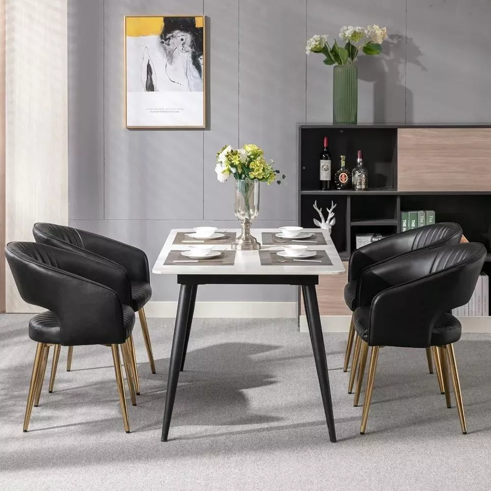 Set of 4 Modern Brown Faux Leather Dining Chairs with Sturdy Metal Legs