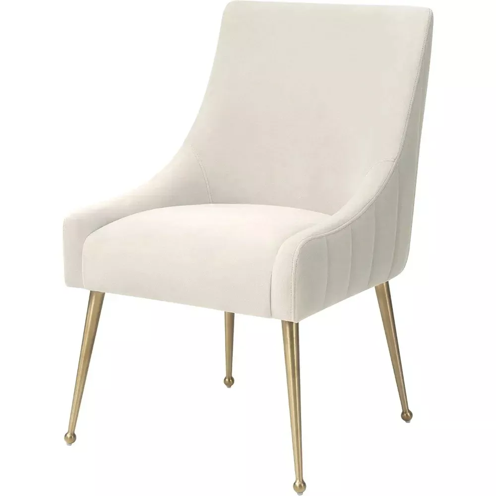 Modern Velvet Dining Chair with Brushed Gold Legs & Stainless Steel Handle