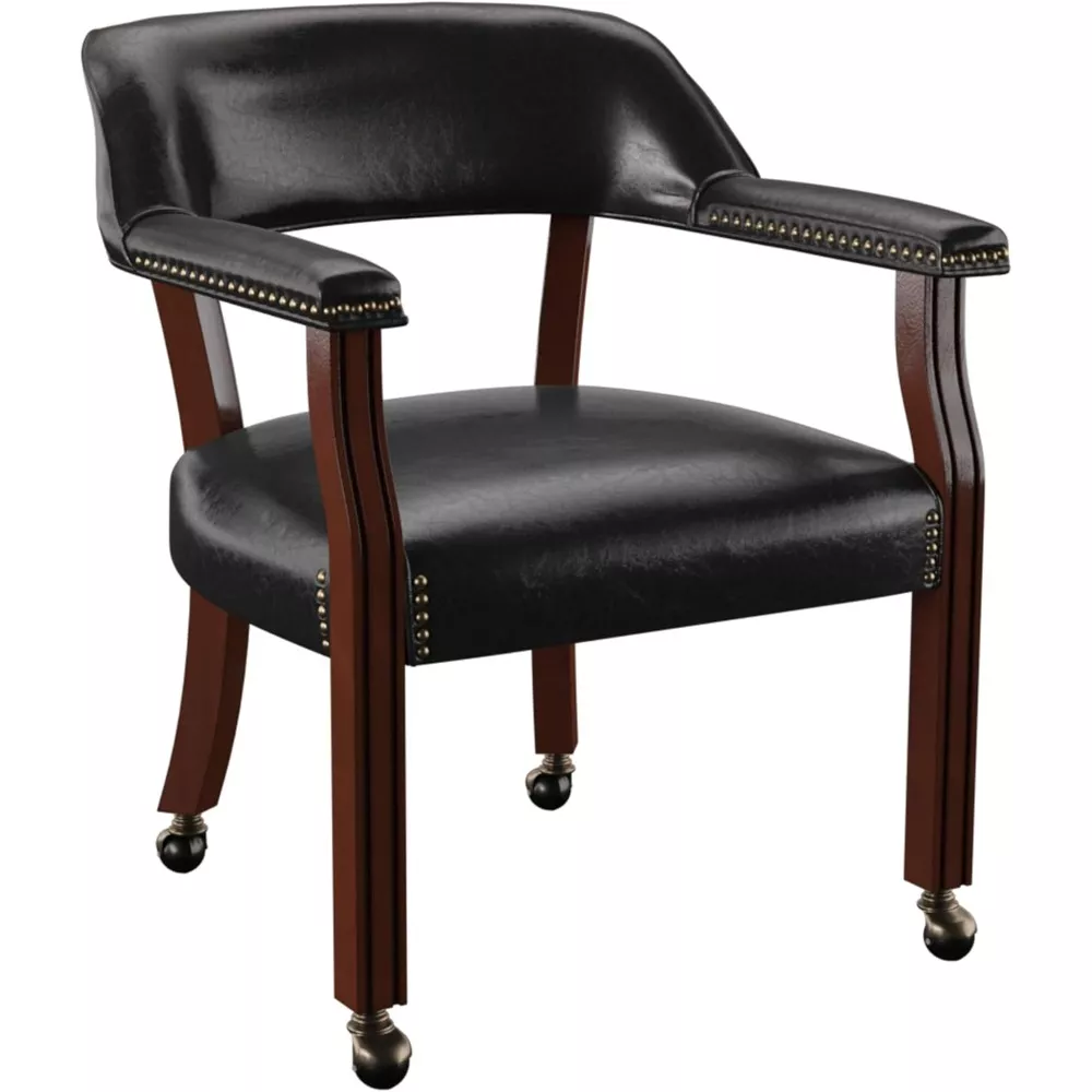 Elegant Cherry Finish Dining Chair with Casters & Nailhead Trim