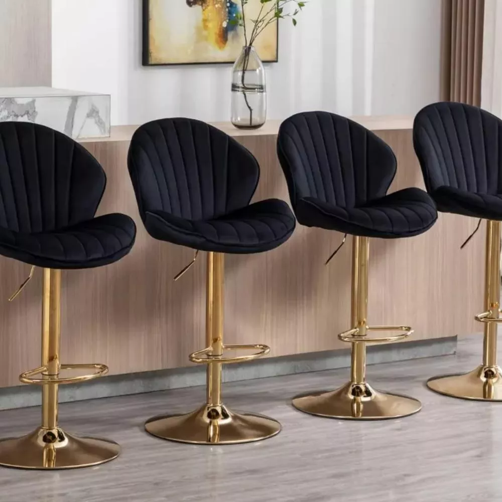 Modern Velvet Bar Stools Set of 4 with Gold Base – Comfortable Counter Height Breakfast Stools