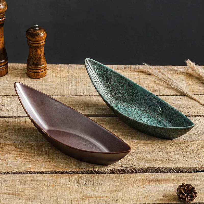 Japanese Style Ceramic Boat Serving Plate for Sashimi & Desserts