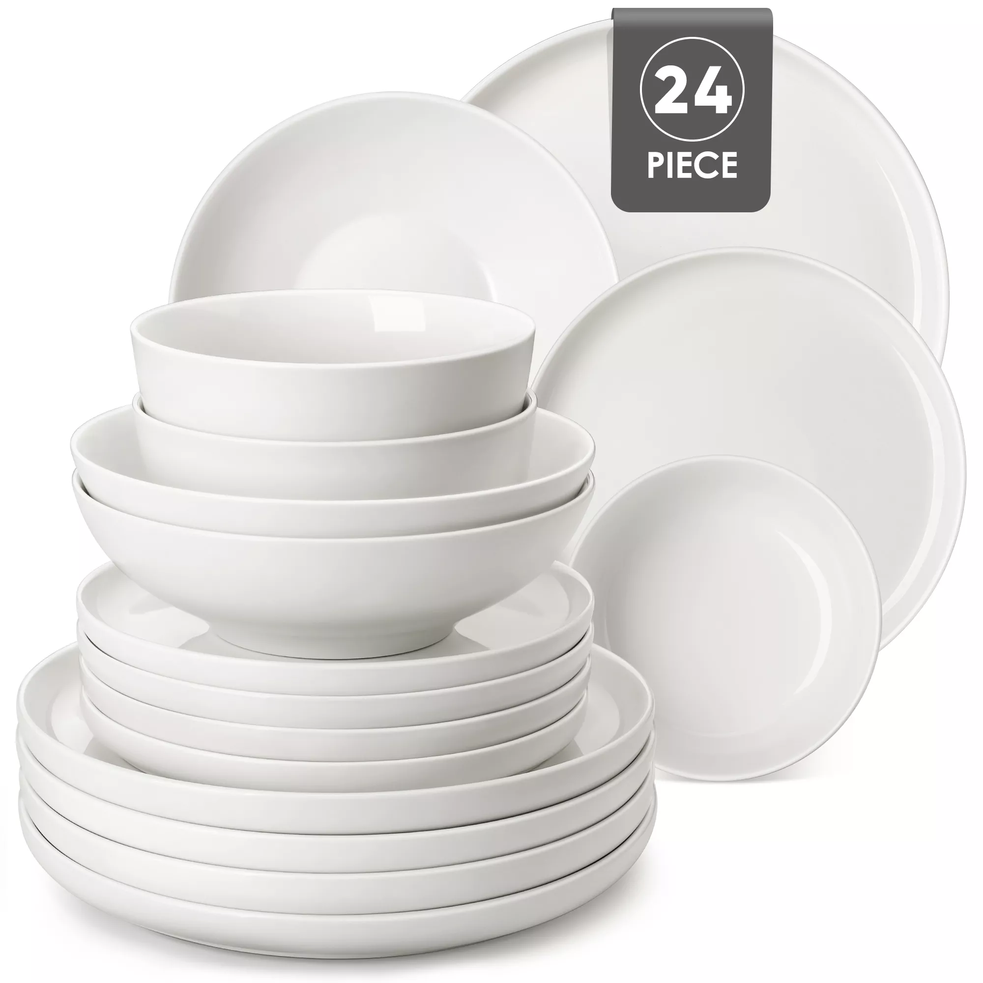 Elegant Porcelain Dinnerware Set – 24-Piece Plates & Bowls Collection
