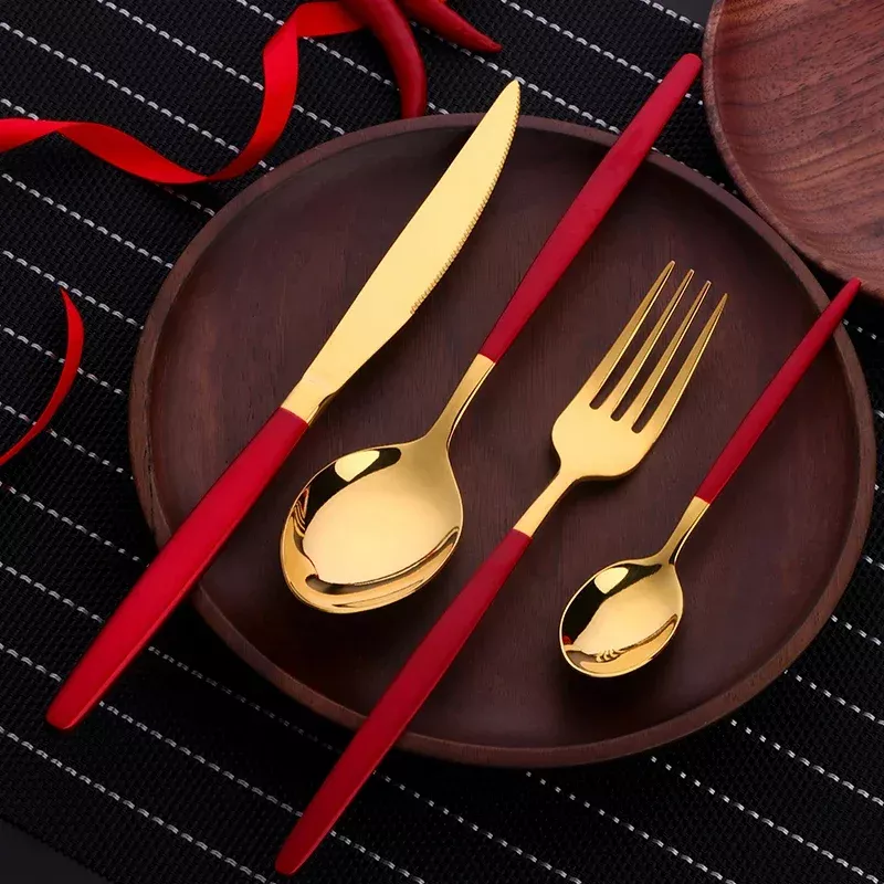 16PCS Red Gold Stainless Steel Flatware Set – Dinner Knife, Fork & Spoon Set