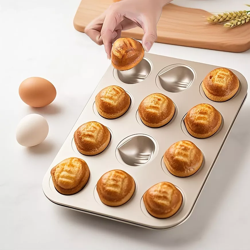 Chestnut Shaped Non-Stick Cake Baking Tray – 12 Grids for Chiffon Cakes, Cookies, and More