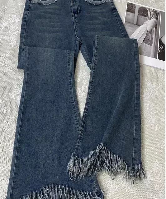 Step into a blend of retro charm and modern fashion with our Korean High Waist Flare Jeans. Perfect for those who adore vintage vibes with a fresh twist, these jeans are an essential wardrobe staple for the style-conscious. With a flattering high waist, slim fit, and chic tassel hem, you’re sure to turn heads while exuding effortless cool. Whether you’re out for a casual coffee or hitting the city streets, these jeans are your go-to for any occasion.