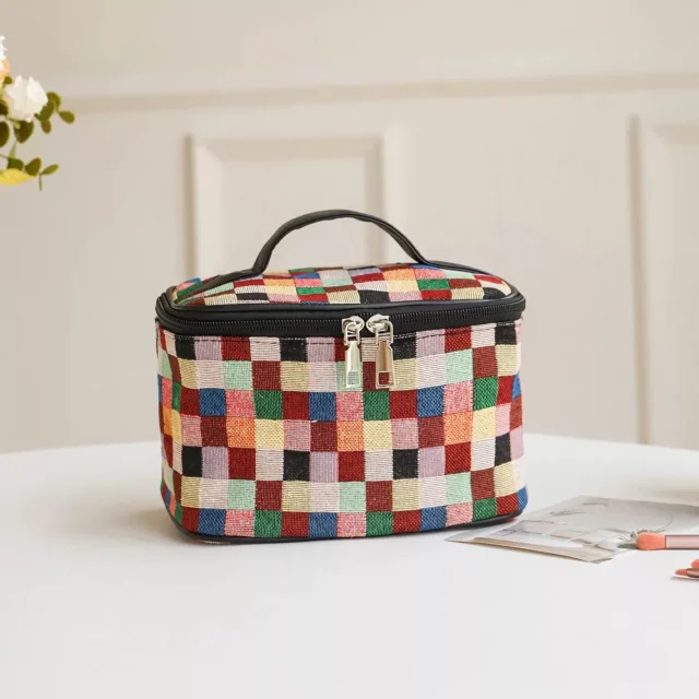 This cosmetic bag isn’t just functional—it’s a statement piece. Its vibrant plaid design sets it apart from ordinary travel bags, while the practical double zipper and large interior make it incredibly convenient. Perfect for daily organization or as a gift for a friend who loves beauty products, this bag combines elegance, durability, and efficiency in one compact design. Make every day a little more colorful and organized with this essential cosmetic accessory.
