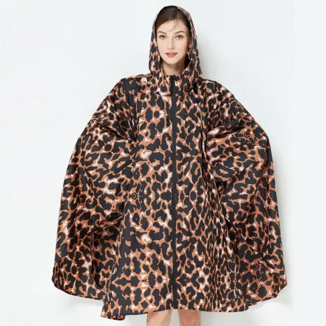 What sets our raincoat apart is its combination of fashion and function. The eye-catching leopard print is both trendy and versatile, making it suitable for various occasions. The high-quality polyester material ensures long-lasting durability, while the lightweight design offers convenience. Perfect for any outdoor activity, this raincoat is a reliable companion for staying dry and stylish.