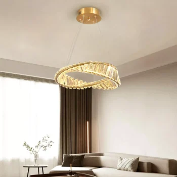 Modern Gold Crystal LED Pendant Light – Luxury Möbius Strip Chandelier