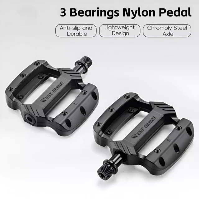 Crafted from high-quality nylon, these pedals offer the perfect balance of strength and lightness. At just a fraction of the weight of traditional pedals, they reduce overall bike load while maintaining superior durability. The wide platform design with anti-slip surface provides a secure grip, even in wet or muddy conditions, giving you complete control of your ride.