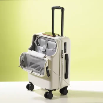 Durable Aluminum Frame Travel Suitcase with Cup Holder and Rolling Wheel