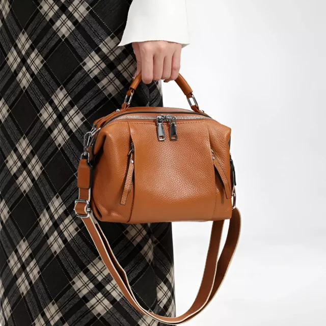 Made from high-quality cowhide leather, this handbag exudes sophistication while offering exceptional durability. The smooth texture and clean lines create a polished silhouette that never goes out of style. With its spacious interior and smartly designed compartments, it keeps your daily essentials organized without compromising on elegance. Thoughtfully designed straps offer a comfortable fit, whether carried over the shoulder or worn crossbody for hands-free ease.