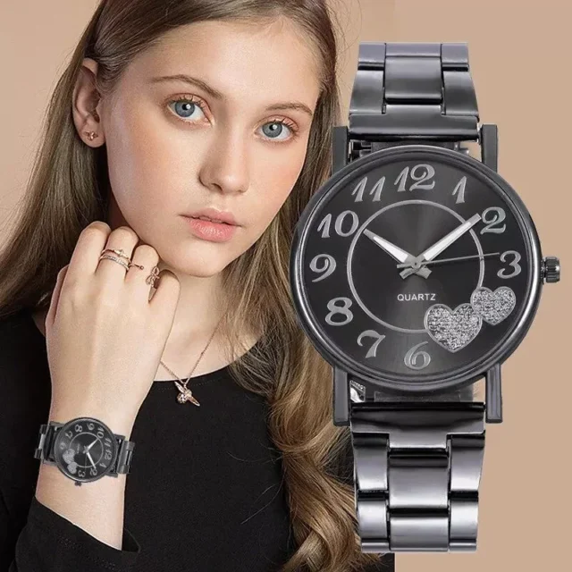Embrace the perfect blend of luxury and casual elegance with our latest addition to the world of fashion accessories – the Luxury Heart Rhinestone Black Quartz Women’s Watch. Designed to dazzle and crafted for the modern woman, this watch is more than just a timepiece; it’s a statement of style and sophistication. With its unique heart-shaped rhinestone embellishments and sleek stainless steel construction, this watch is the epitome of fashion-forward design, suitable for any occasion, from parties to business meetings, casual outings, and everyday life.