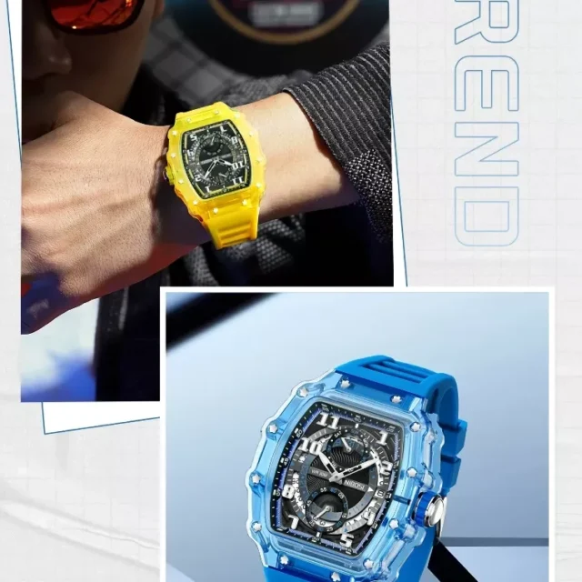 This watch is not just a timepiece; it is a statement. Its skeleton design allows you to see the mechanical heartbeat of the watch, combining classic elegance with modern innovation. The tonneau shape adds a touch of sophistication that complements any outfit, while the silicone strap ensures comfort during all activities. Its durable construction makes it ideal for everyday wear, and features like water resistance, shock protection, and luminous hands ensure reliability in any environment.