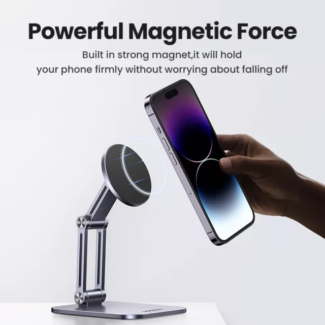 Say goodbye to holding your phone during long video calls or bending your neck while streaming. This magnetic desk phone holder lets you stay comfortable, hands-free, and more productive. Switch easily between portrait and landscape modes, keep your phone in view while charging, and enjoy a clutter-free workspace. Its portable, lightweight design makes it easy to carry and perfect for any setting – at home, in the office, or even while traveling.