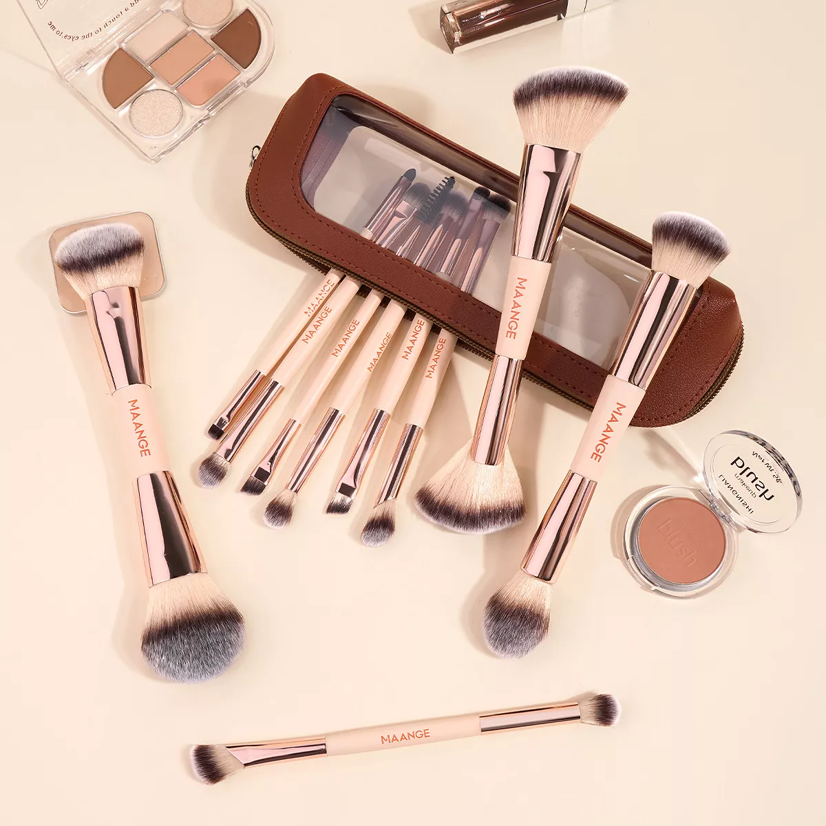 8pcs Double-Ended Foundation Makeup Brush Set for Liquid, Cream & Powder