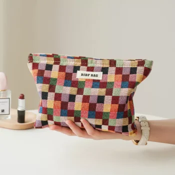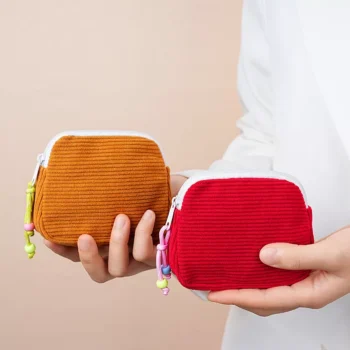 Women’s Small Corduroy Makeup Bag – Portable Cosmetic Storage Pouch & Mini Clutch Wallet