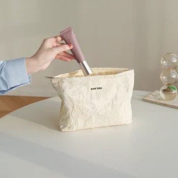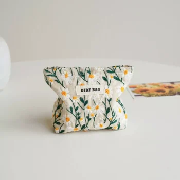 White Embroidered Daisy Makeup Bag – Portable Cosmetic & Coin Pouch