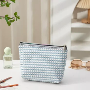 Solid Color Striped Makeup Bag Pouch – Mini Cosmetic Organizer Case