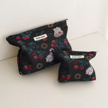 Chic Cat & Cherry Cosmetic Bag for Women – Travel & Jewelry Pouch