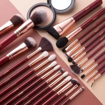 Professional Burgundy Red Makeup Brush Set with Natural Goat Hair