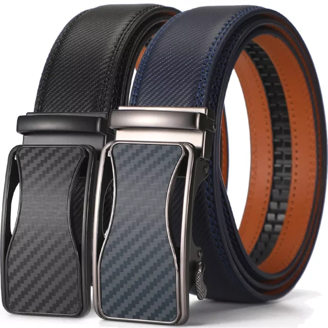 The automatic buckle mechanism ensures a perfect fit every time—no more worn holes or awkward adjustments. With its smooth ratchet system, you can slide, lock, and release with a simple motion. The luxurious genuine cowskin leather feels premium and durable, while the plaid-style carbon fiber pattern in black or blue adds a subtle edge of modern luxury.