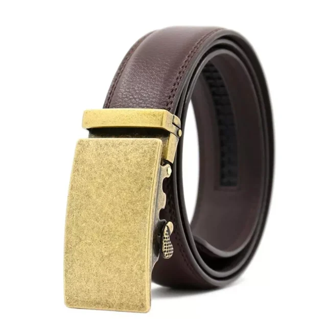 The standout feature is the automatic buckle—a modern upgrade from the traditional pin design. It allows for smooth, adjustable fit with one simple motion, offering a secure hold without the hassle of belt holes. The bronze-tone metal buckle adds a polished accent that works with both formal trousers and casual jeans, making this belt a versatile go-to for every season and occasion.