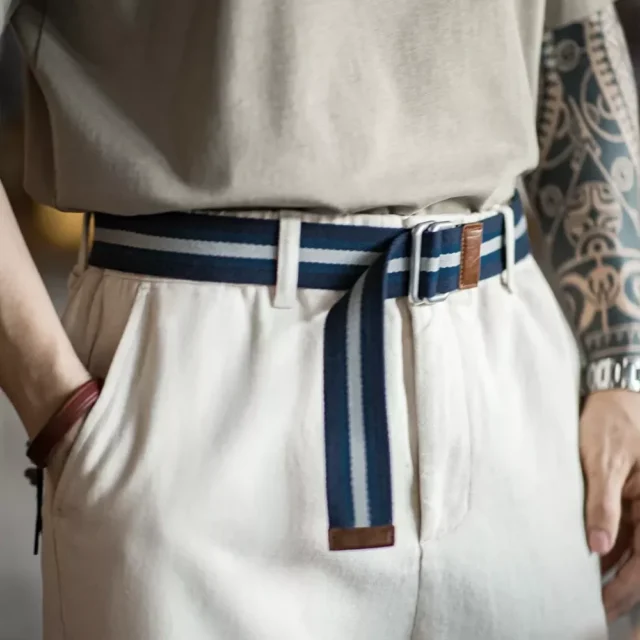 Built with attention to detail, this belt offers a blend of practicality and classic design. The woven fabric is flexible yet sturdy, while the zinc alloy double-ring buckle ensures strength and ease of adjustment. A decorative touch of genuine cowhide leather enhances its retro appeal.