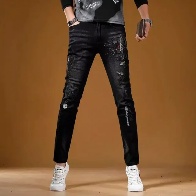 What sets these jeans apart is the subtle yet striking embroidery detail, lending an air of bespoke elegance to your attire. Styled with the Korean version in mind, these jeans provide a slim and tailored fit that flatters your form while keeping the vibe utterly casual and unforced. Their versatile design ensures they pair seamlessly with your favorite tees, shirts, or jackets, taking you from street casual to smart-casual with no effort at all.