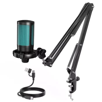 USB Condenser Gaming Microphone with RGB Lighting – Noise Cancelling Mi
