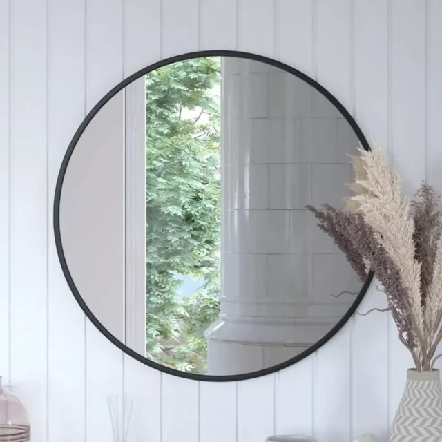 Introducing our stylish and modern 30-inch round wall-mounted mirror, a perfect blend of functionality and elegance. Its sleek design features a slim, matte black metal frame, bringing a contemporary touch to any room in your home. Whether it’s your bathroom, entryway, or living room, this mirror adds a touch of sophistication and opens up your space, making it look more inviting and spacious.