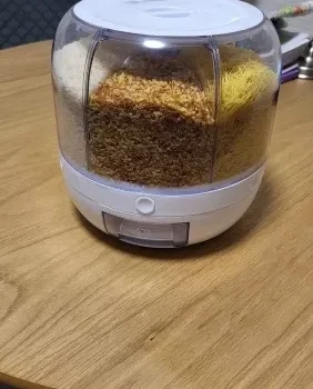 Robust and well-maintained, this grain dispenser is a lifesaver for decluttering my cabinets. Its efficiency is unmatched, prompting me to order more. A fantastic solution for organizing and freeing up valuable storage space.
