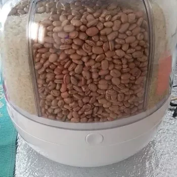 A smooth-rotating, cupboard-friendly grain dispenser, ideal for storing various items like rice, beans, and lentils.