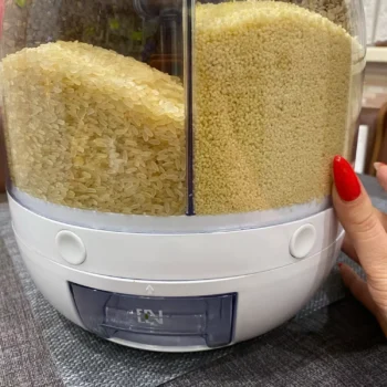 What sets our grain dispenser apart is its unique blend of functionality and modern design. Its rotating feature makes it an innovative solution for space-saving and easy access. The high-quality materials used in its construction guarantee durability, making it a valuable addition to your kitchen for years to come. Whether you’re a busy professional or a home cook, this dispenser is designed to make your life easier and your kitchen more organized.