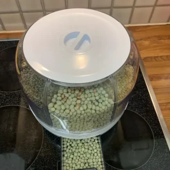 Good for saving space and maintaining hygiene, this grain dispenser proves practical and easy to use.