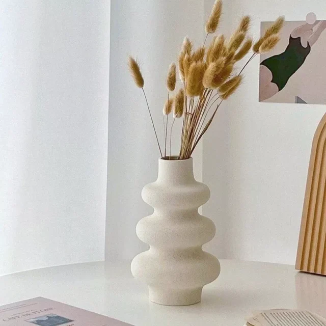 Our vase stands out with its medium size (15-25cm), perfect for any tabletop. Crafted from high-quality ceramic, it exudes a modern charm that captivates and impresses. Ideal for holding flowers, this vase serves both aesthetic and functional purposes, making it a versatile addition to your living room, office desk, or any other space that needs a touch of elegance.