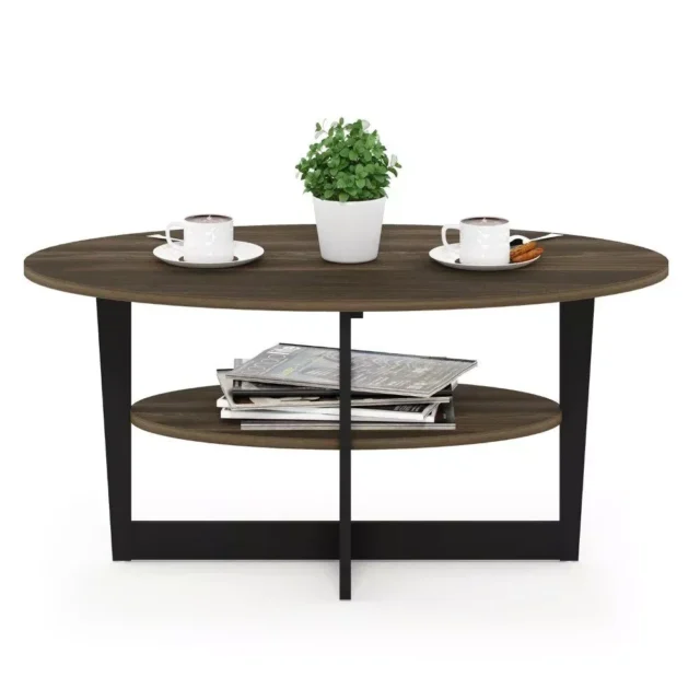 Enhance your living space with this sleek, Modern Oval Coffee Table, a perfect blend of style and functionality. Its elegant Columbia Walnut/Black finish and minimalist design make it a stunning addition to any contemporary home. The table’s oval shape, combined with a sophisticated color palette, offers a touch of luxury and refinement to your living room.