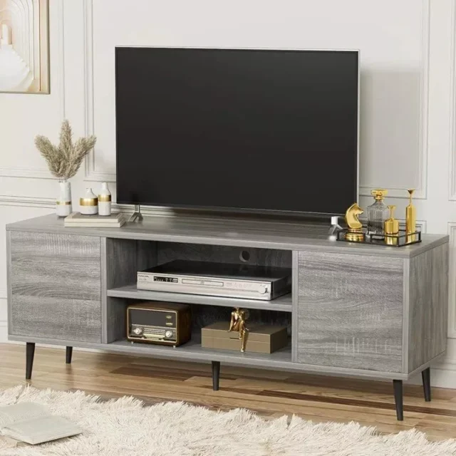 Modern & Retro TV Stand with Storage Cabinets for Living Room and Bedroom