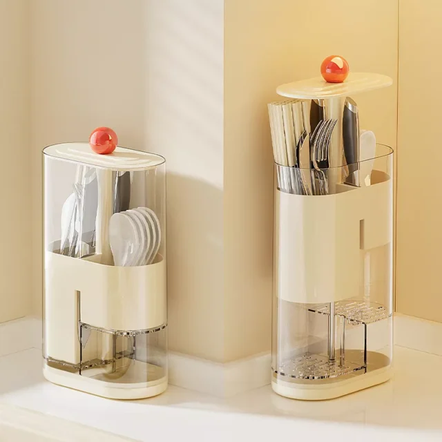 This holder is thoughtfully built with a large capacity to store multiple utensils in one compact space. Made from durable and food-safe PP material, it is resistant to moisture and easy to clean. Its smart drainage system helps keep your cutlery dry and free from water build-up. The lift-top lid design protects your utensils from dust while providing easy access at any time. The streamlined shape makes it easy to fit on any kitchen counter, dining table, or cabinet shelf.