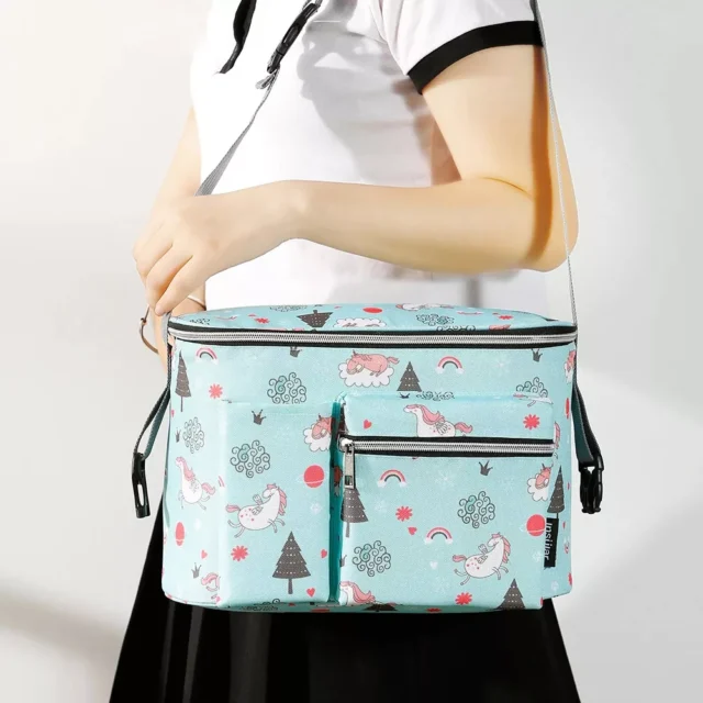 Its high-capacity design ensures you have space for everything you need, whether you’re heading to the park, running errands, or traveling. The portable and easy-to-carry structure makes it perfect for moms and dads on the move, keeping essentials within reach while keeping your hands free.