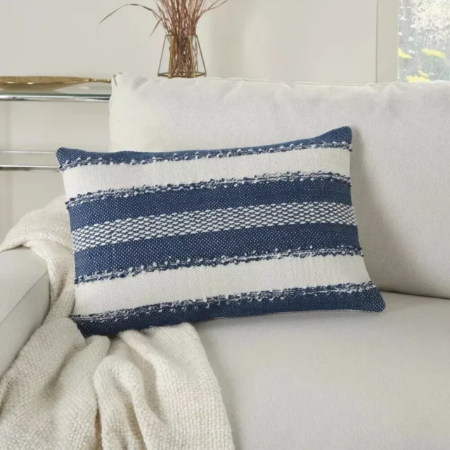 Our Navy Woven Stripes & Dots Decorative Throw Pillow stands out with its unique design, combining practicality with aesthetics. Whether it’s sprucing up your living room or adding comfort to your outdoor furniture, this pillow is an excellent choice for anyone looking to enhance their living space.