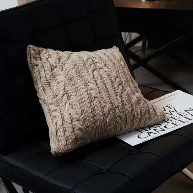 Nordic Twist Knit Pillow Cover – Soft Beige Gray, Cozy Decorative Cushion
