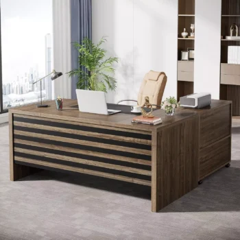 Modern L-Shaped Executive Desk with Reversible File Cabinet and Storage